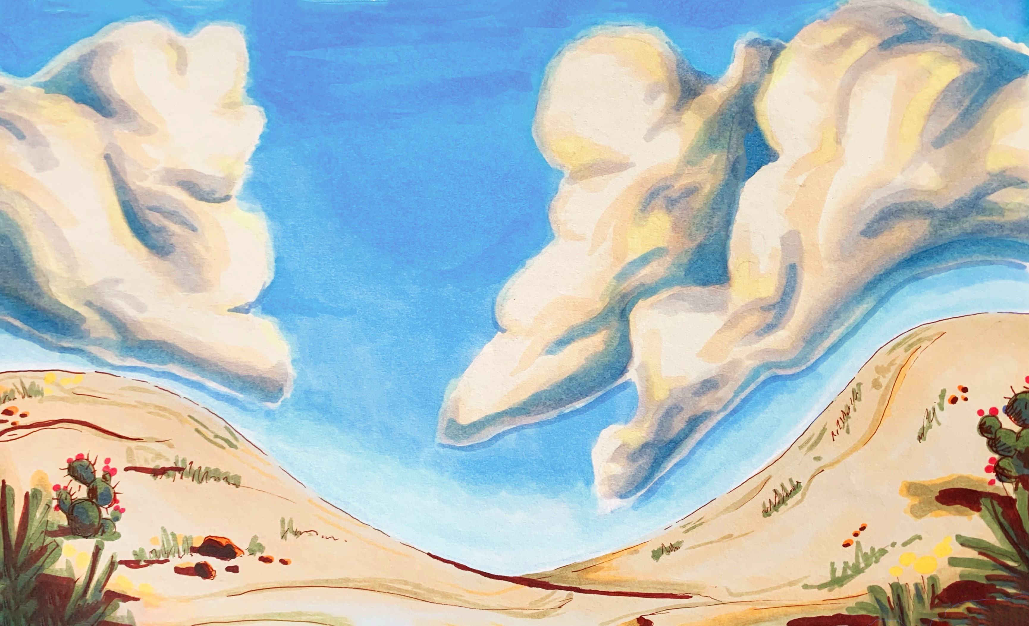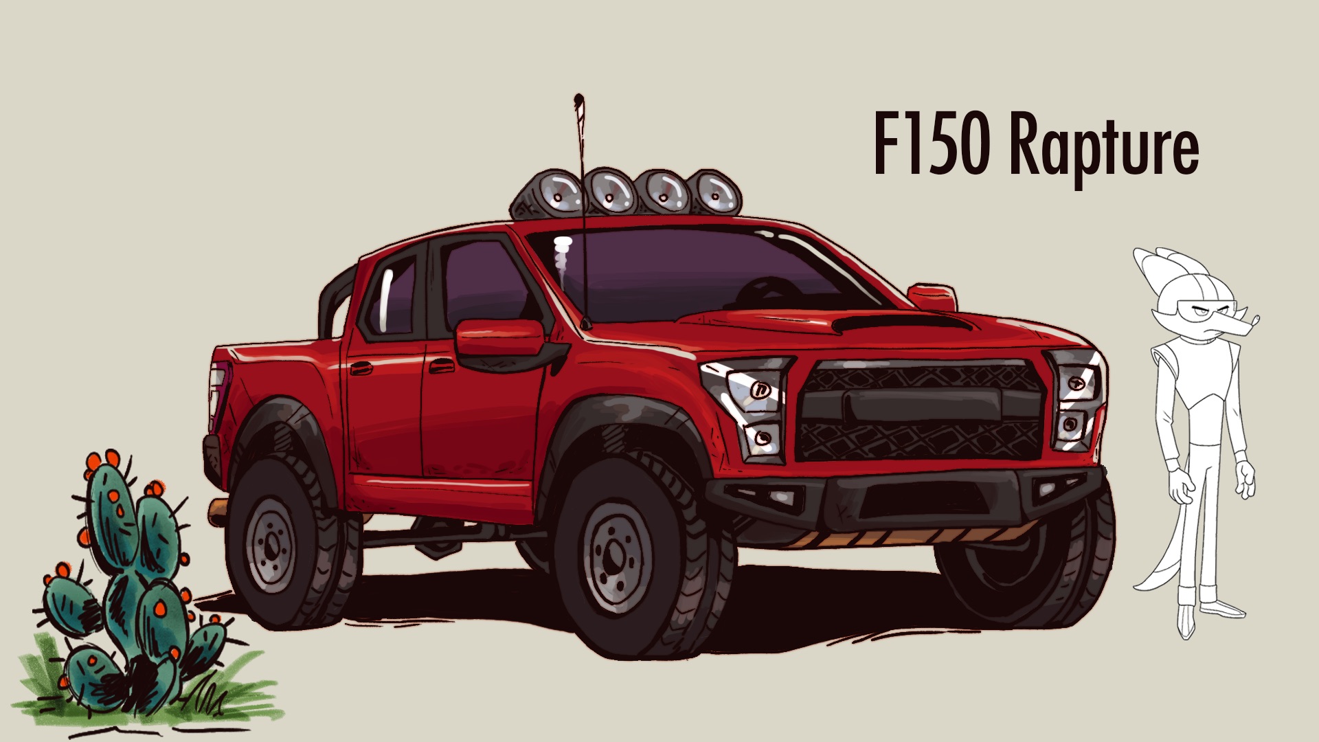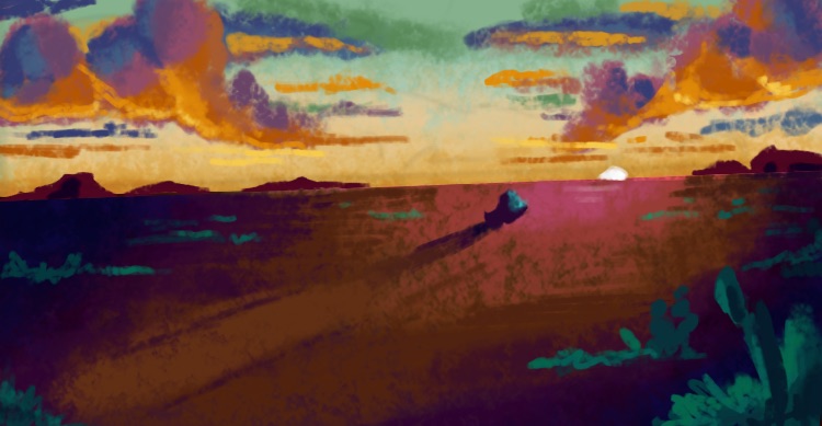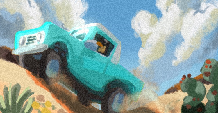 I served as ART DIRECTOR alongside production designer Kristen Breshears. I worked with the director to create the style of the world based on his desires of Western Movies, Classic Cartoons, and Texan culture. I learned a lot about off-road desert racing and the things that inspired the director to make this short film. The concept was to blend 2D animation and 3D animation, natural painterly textures, line-work and old school film grain. After establishing references for style I then worked with Kristen, who oversaw how our vision could be accomplished by the 3D and 2D designers and artists in our crew.